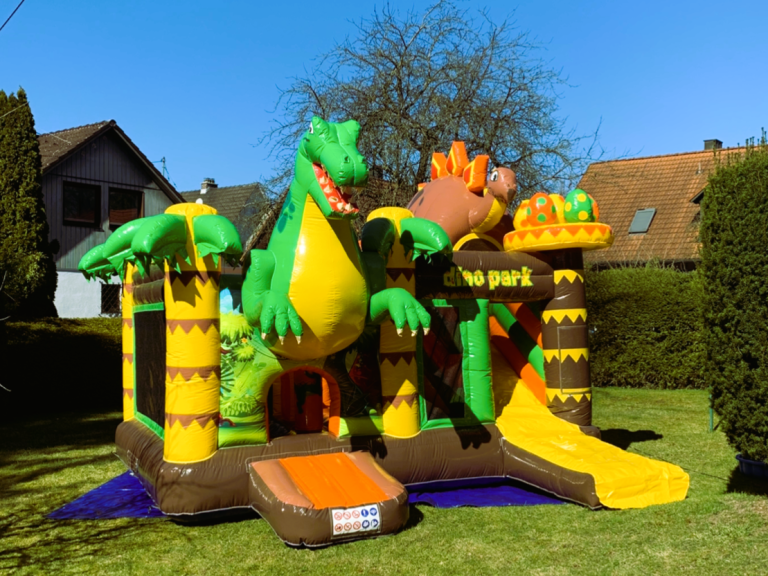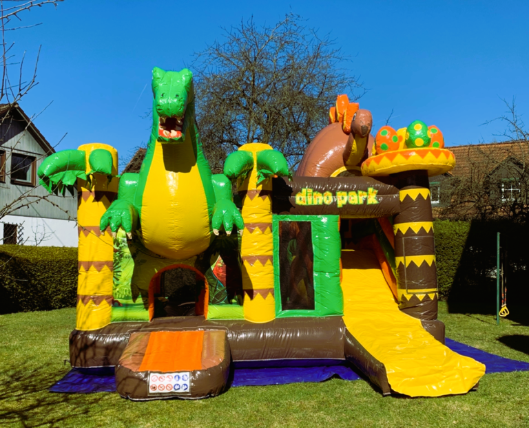 Unsere Dino Hüpfburg ist perfekt für Kindergeburtstage, Gartenpartys und Sommerfeste.