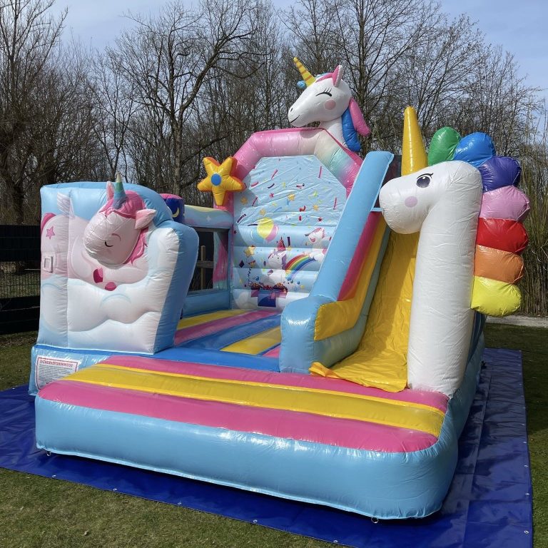 Kinder können hier springen, spielen und gemeinsam Spaß haben. Die Einhorn Hüpfburg sorgt für unvergessliche Momente auf jedem Event.